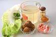 白菜は水洗いし、食べやすい大きさのザク切りにする。白い部分が厚い場合はそぎ切りにして下さい。