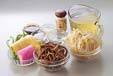 モヤシ、サヤインゲン、かまぼこを加え、しんなりすれば火を止め、器に盛り合わせ、お好みで七味唐辛子を掛けていただく。
