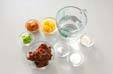 水に粉寒天を加え、よく混ぜて溶かす。火にかけて更に混ぜながら煮溶かす。