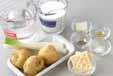 ジャガイモは皮をむき、小さめの乱切りにし、水に放つ。
