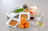 卵は割りほぐし、<調味料>を混ぜ合わせる。