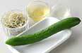 ボウルに水気をきったキュウリ、チリメンジャコ、作り置き甘酢、だし汁を加えて、和える。