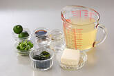 再び煮立てば豆腐、ワカメ、刻みミツバを加えて火を止める。