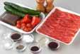 牛肉は4cm位の長さに切って<下味>をからめる。