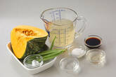 鍋にカボチャ、だし汁、調味料を加え、落とし蓋をして、鍋の蓋をして強火にかけ、煮立てば火を弱め、15~20分煮る。