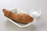 揚げ油にサツマイモを入れ、浮いてくるまで揚げて油を切り、いったん取り出す。
