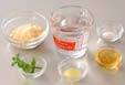 容器の内側を水でぬらし、(2)を流し入れ、冷蔵庫で冷やし固める。
