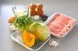 まな板等の平らなところに豚薄切り肉を3枚ずつ少し重ねながら広げ、全体に塩コショウ、小麦粉を薄く振りカボチャをのせてロールに巻く。