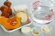 鍋にバターを熱し、玉ネギを入れてしんなりするまで炒める。カボチャ、水、チキンブイヨンを加え、カボチャが柔らかくなるまで約7~8分アクを取りながら煮る。