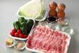 1のフライパンにサラダ油大1を加える。強火で下味をつけた豚ロース薄切り肉を、両面焼いていったん取り出す。すべて焼ければフライパンに戻し、<調味料>を加えからめる。