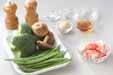 フライパンにゴマ油大1.5を中火にかけ、サヤインゲンをしんなりするまで炒め、いったん取り出す。