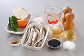 器にワカサギ、玉ネギ、ニンジン、ピーマンをタレごと盛り合わせる。一味唐辛子を振り掛ける。