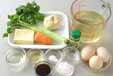 ユリネは1枚ずつはがし、傷付いた茶色の部分は削ぎ取り、サッと塩ゆでしておく。