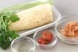 ミツバは水洗いし、水気を切って根元を切り落とし、1cm幅に刻む