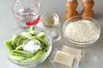 エンドウ豆はさやから出し、塩をまぶしつける。