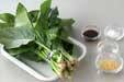 <合わせゴマダレ>でほうれん草を和え、器に盛る。