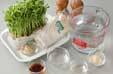 豆苗は水洗いして根元を切り落とし、2cmの長さに切る。