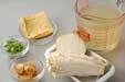 油揚げは熱湯をかけて油抜きをし、縦半分に切り、更に1cm幅の短冊に切る。