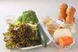 サニーレタスはきれいに水洗いして、食べやすい大きさに手でちぎり冷水に放つ。