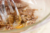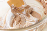 1に卵白の1/3量を加え、ハンドミキサーで全体に混ぜ合わせる。残りの卵白をゴムべらで加え、泡をこわさないようにサックリ混ぜる。