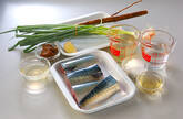 サバとゴボウと青ネギを器に盛り、煮汁を少し煮詰めて器に盛ったサバに煮汁を掛け、水気を切った針ショウガをのせる。