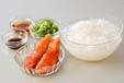 からし明太子を加え、炒め合わせ、器に盛り付け刻みネギを散らす。
