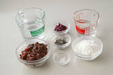 小鍋にゆで小豆を入れ、水、塩を加えて中火にかける。煮立てば味をみて、甘味が足りないようなら、砂糖を加える。