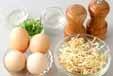 卵を割りほぐし、切干し大根、刻みネギを加えて混ぜ合わせ塩コショウで味付けする。