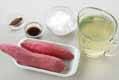 (1)にだし汁、砂糖、薄口しょうゆ、くちなしの実を入れて中火にかけ、煮汁がほとんどなくなるまで煮たら、器に盛る。