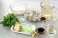 ショウガは皮をむき、細いせん切りにし、半分は水に放ちアク抜きする。
