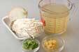 鍋にだし汁、玉ネギを入れ強火にかけ、煮立てばエノキを加える。