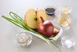 器に紫玉ネギ、リンゴ、細ネギを盛り合わせ、ショウガを散らし、食べる直前に<ドレッシング>を掛ける。