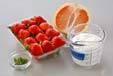 器にプレーンヨーグルトを入れ、イチゴ、グレープフルーツを盛り、ミントの葉を添える。
