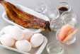 鰻の蒲焼きは頭を落とし、卵焼き器の長さに合わせて切り、幅を2等分に切る。