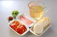 エノキは水洗いして根元を切り落とし、3等分の長さに切り、根元を食べやすい大きさにさばく。