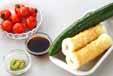 器にプチトマトと盛り合わせ、好みで<ワサビじょうゆ>をかけていただく。