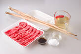 鍋にサラダ油を中火で熱し、牛肉を炒め、色が変われば<合わせだし>を加えて強火にする。