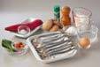 イワシは塩水につけ、指先で尾側から頭に向かってウロコをこそげる。頭を落とし腹側を斜めに切りワタを出して水洗いする。