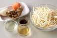 モヤシは根を取ってたっぷりの水につけ、パリッとすればザルに上げる。