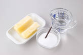 鍋に<バニラシロップ>の材料を入れて強火にかける。煮立てば混ぜながらグラニュー糖を溶かす。火を止め、バニラビーンズ、バニラのサヤごと加えてシロップに香りを移す。又はバニラエッセンスを少々加える。