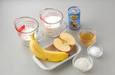 器に1を注ぎ、ゆでたタピオカ、バナナ、リンゴをのせる。好みでハチミツをかける。
