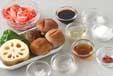 レンコンはピーラー等で皮をむき、縦半分に切り、薄い半月切りにして水に放つ。