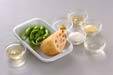 レンコンは皮をむいて縦半分に切って薄切りにし、酢水に10分放ち、ザルに上げる。