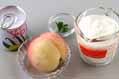 白桃は縦に切り込みを入れてねじるように分け、種と皮を取り、一口大に切る。