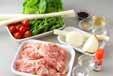 <タレ>の白ネギは細かいみじん切りにし、他の材料と混ぜ合わせる。