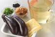 鍋にだし汁を入れて強火にかけ、煮立てばナス、油揚げを加え、再び煮立てば火を少し弱めて3分程煮る。
