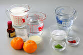 ミカンは皮と薄皮をむき、大さじ3杯分の果肉を絞り、残りは取っておく。