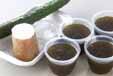 キュウリは薄い輪切りにして塩でもみ、水気が出れば水洗いして水気を絞る。