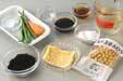 油揚げは熱湯に通して油抜きをし、縦半分に切って更に細切りにする。