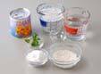 缶詰めのフルーツはザルに上げて汁気を切る。